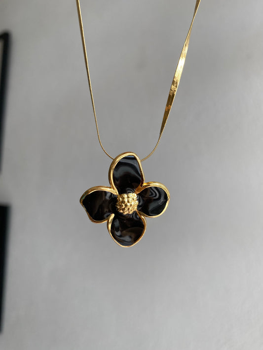 JUEGO ARETES Y COLLAR FLOR AC INOX