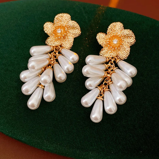ARETES FLOR LARGOS DE CUENTAS