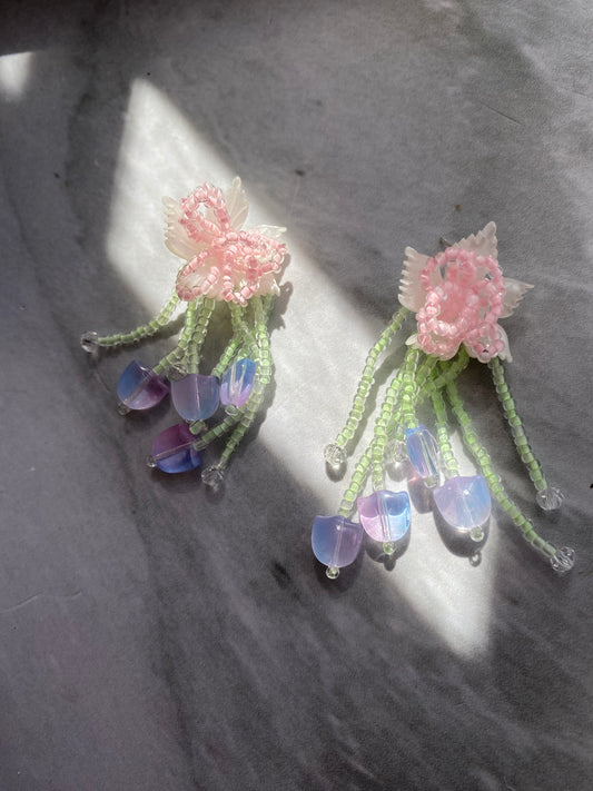 ARETES FLOR LARGOS DE CUENTAS